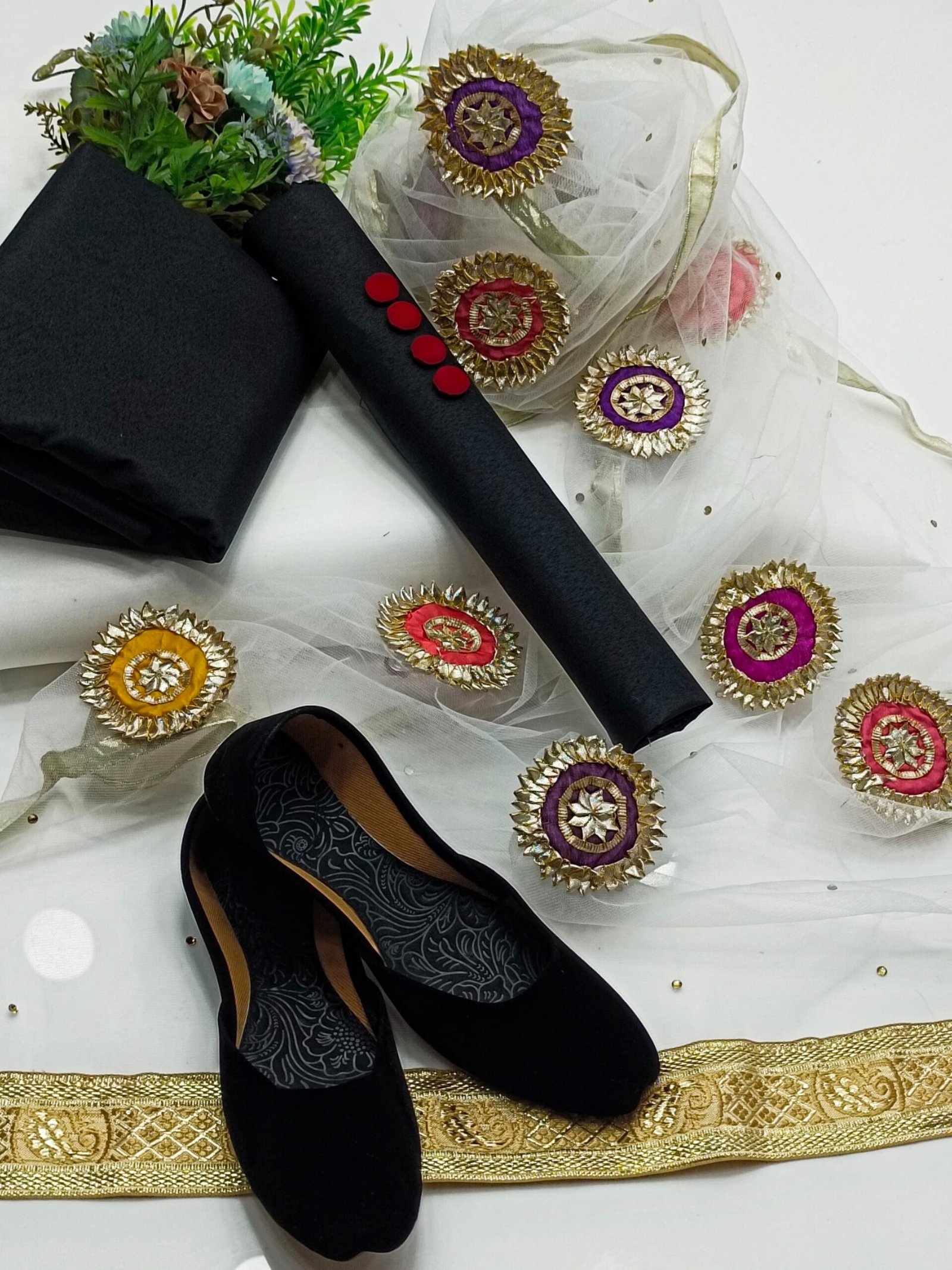 AmorZaib Elegant Party Wear 4PC Dress with Free Khussa – Black