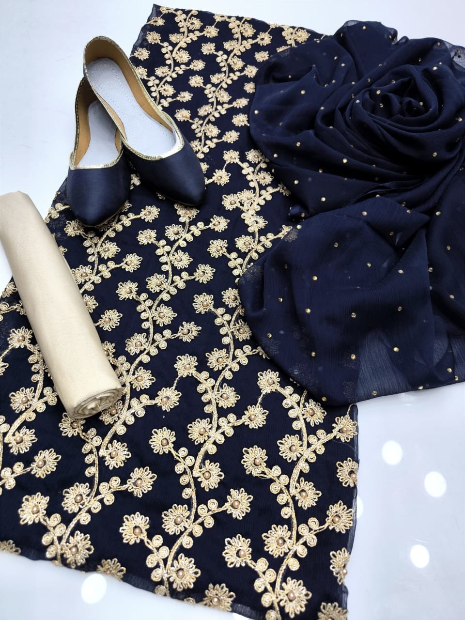 Be the first to review “AmorZaib Fancy 4-Piece Chiffon Embroidered Dress Set – Dark Blue”