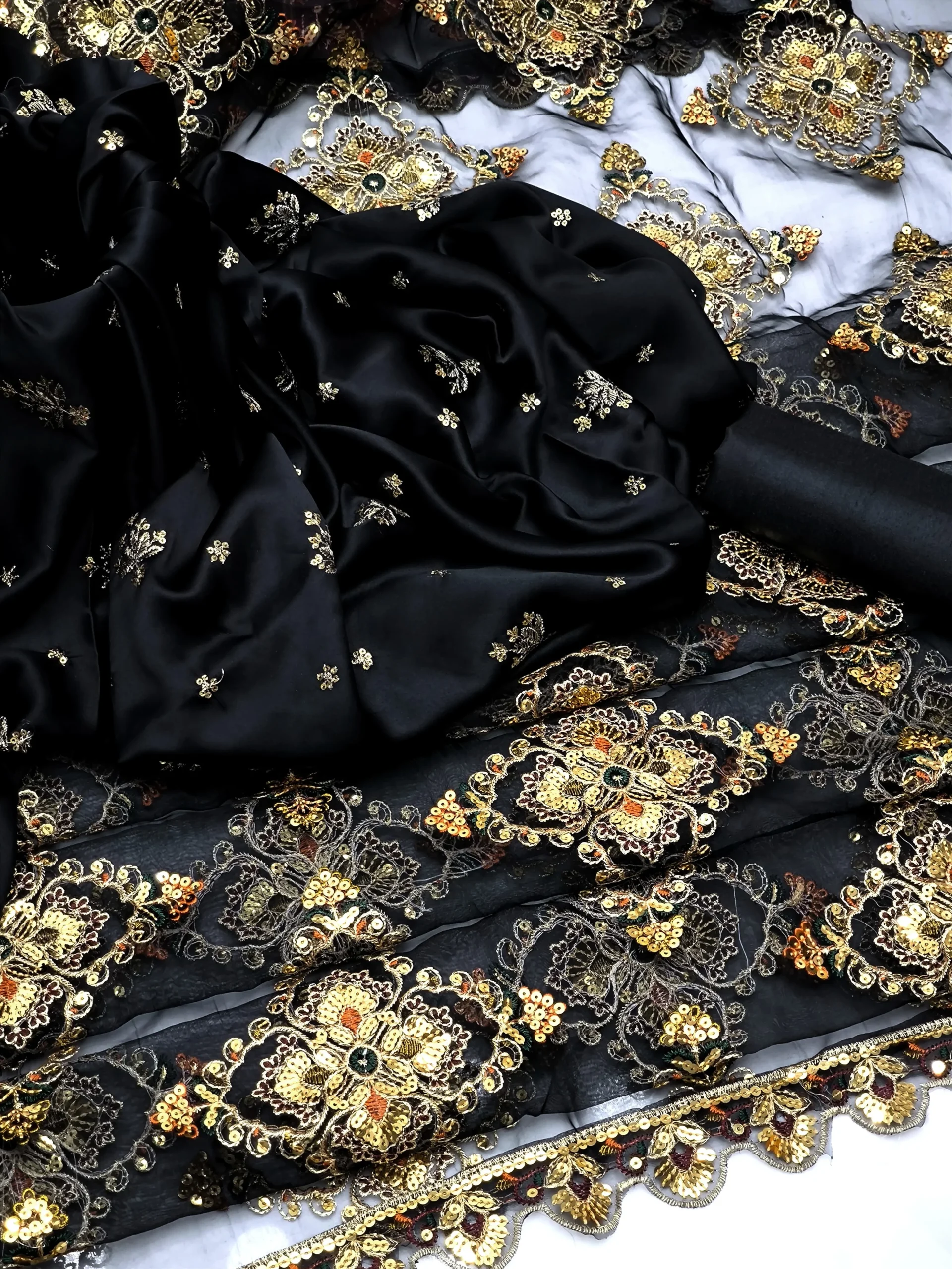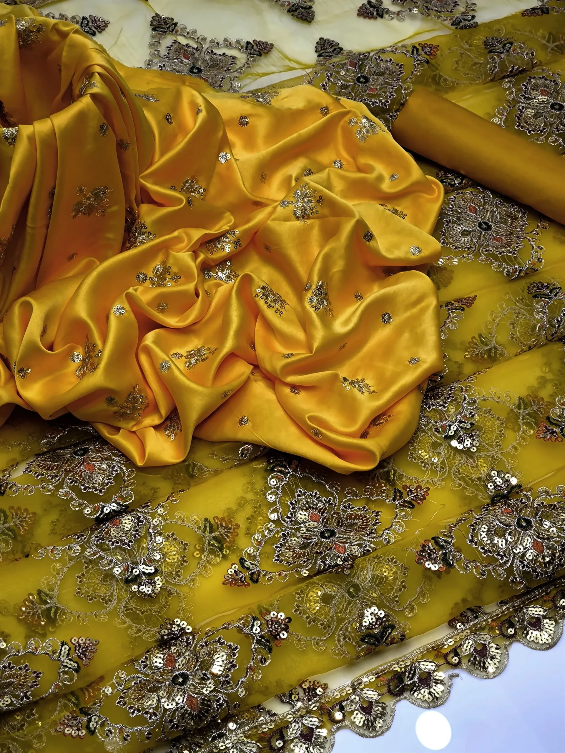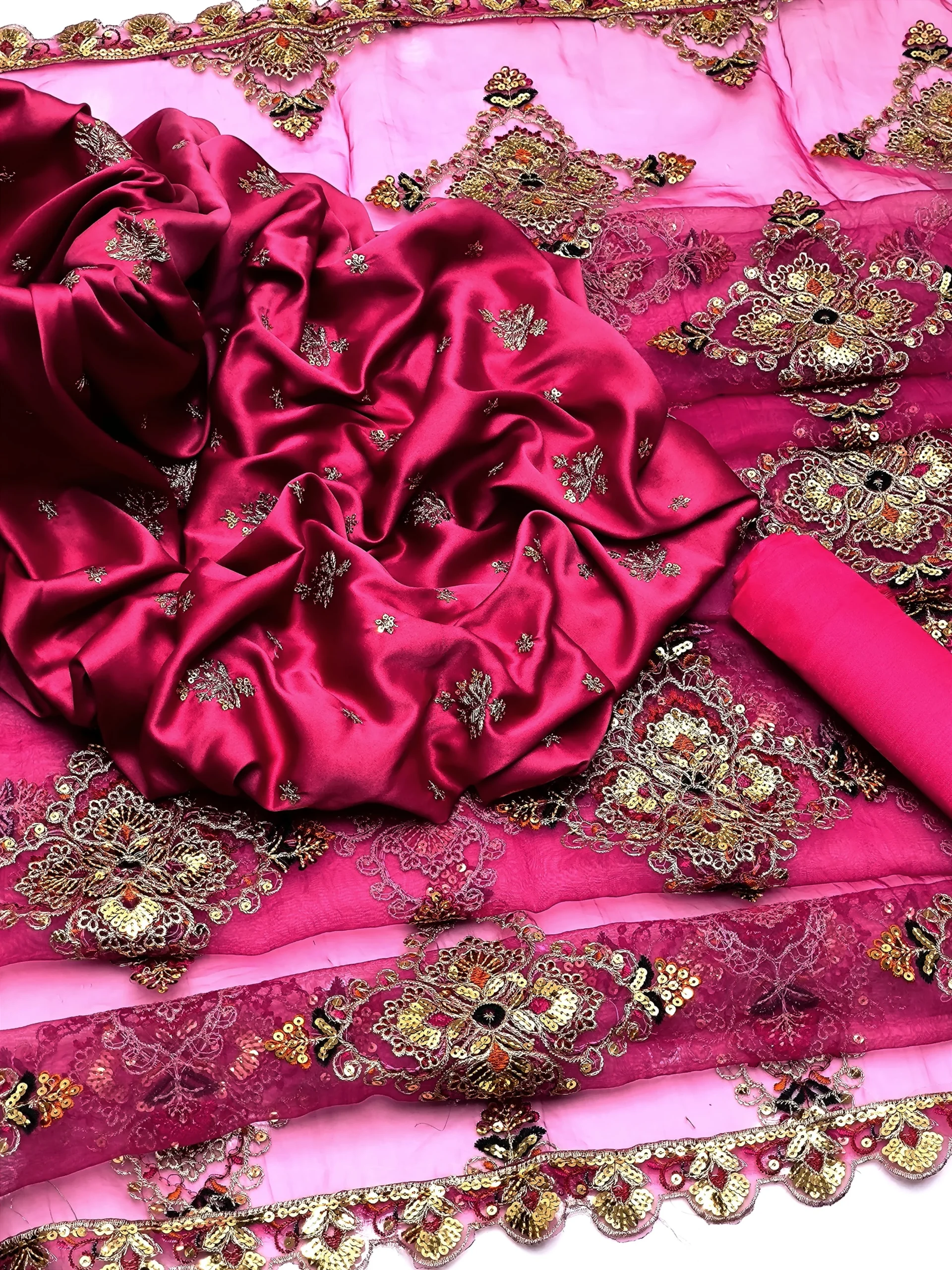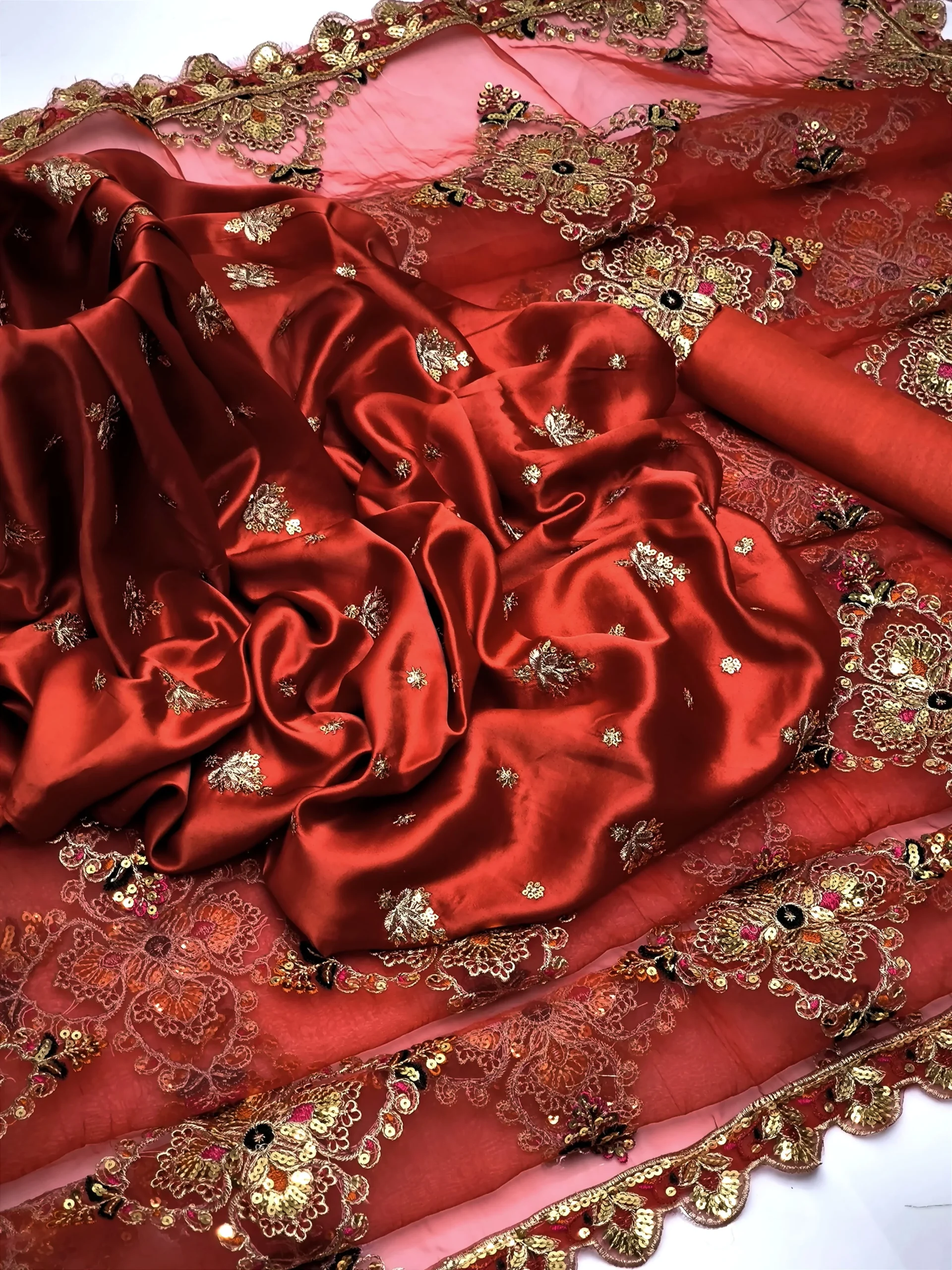 • Dupatta: Organza Dupatta with Heavy Indian Embroidery + Sequin Work