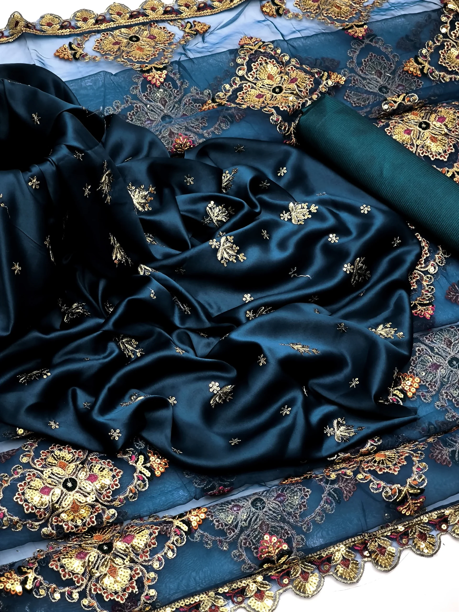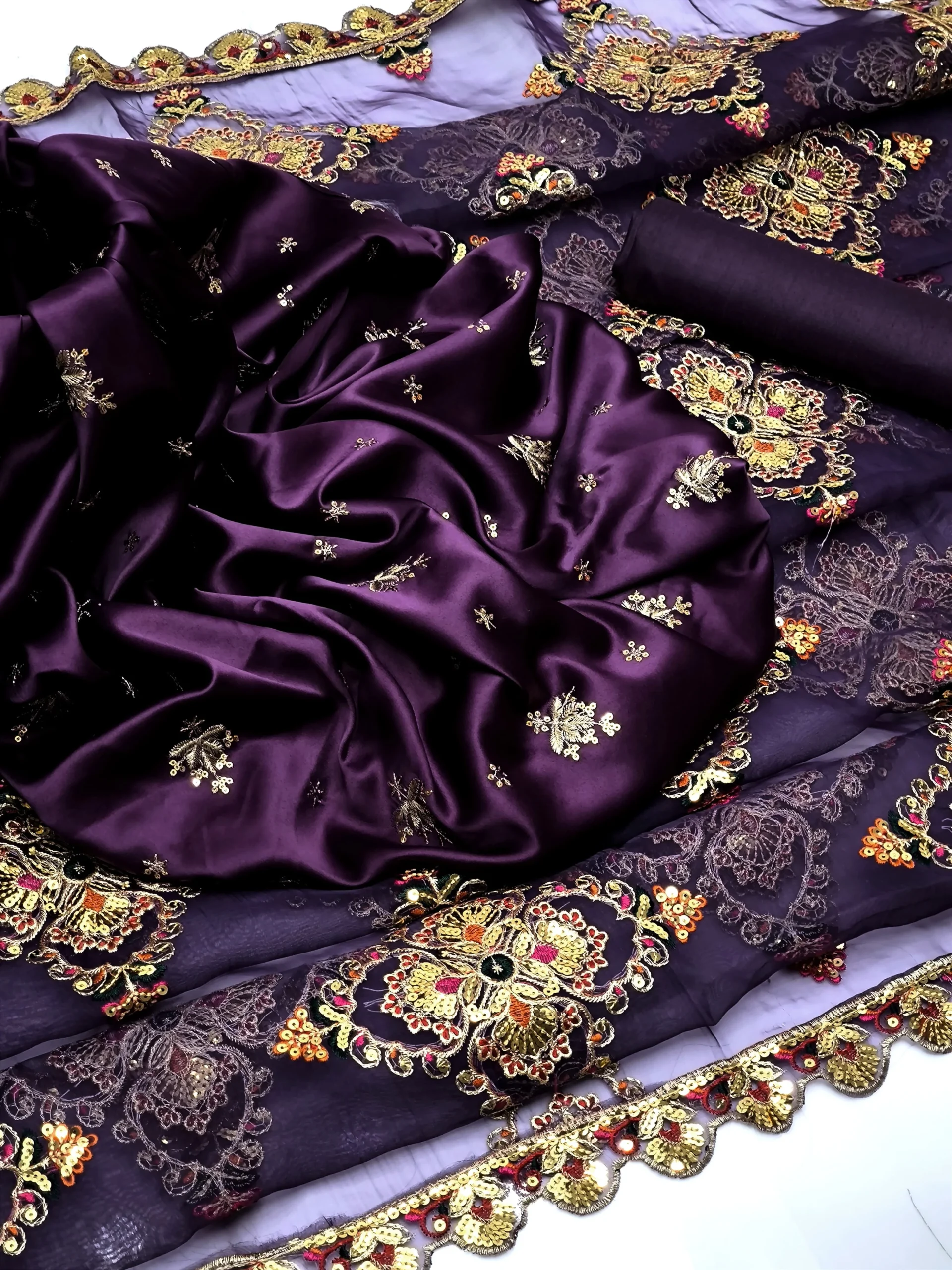 Step into elegance with AmorZaib’s Luxury 3pc Shadi Season Dress, specially designed for festive occasions like Eid, Mehndi, Barat, Walima, and party events. This premium unstitched outfit is a perfect blend of traditional grace and modern sophistication.