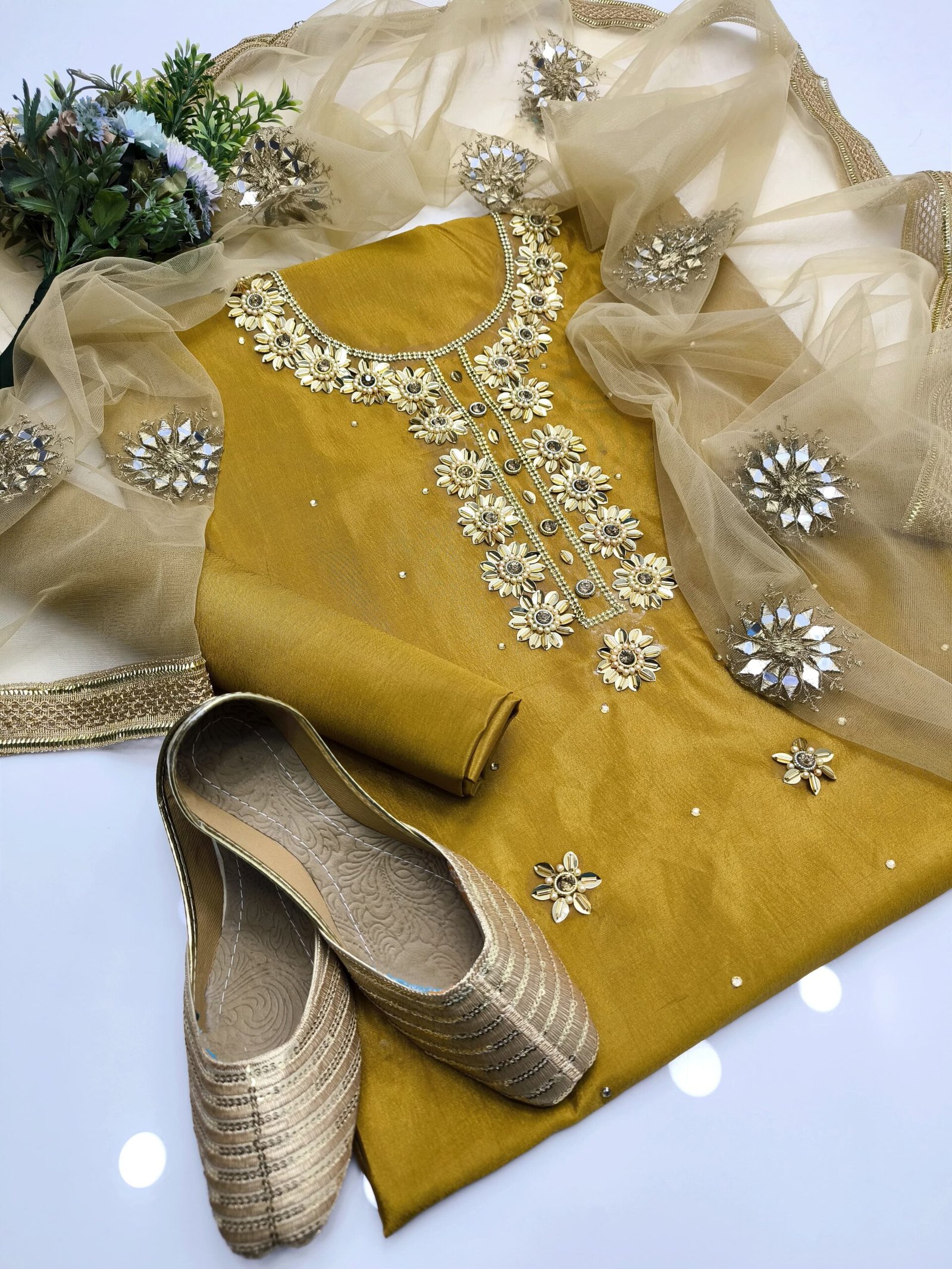 AmorZaib Royal 4-Piece Heavy Handmade Dress Set – Yellow