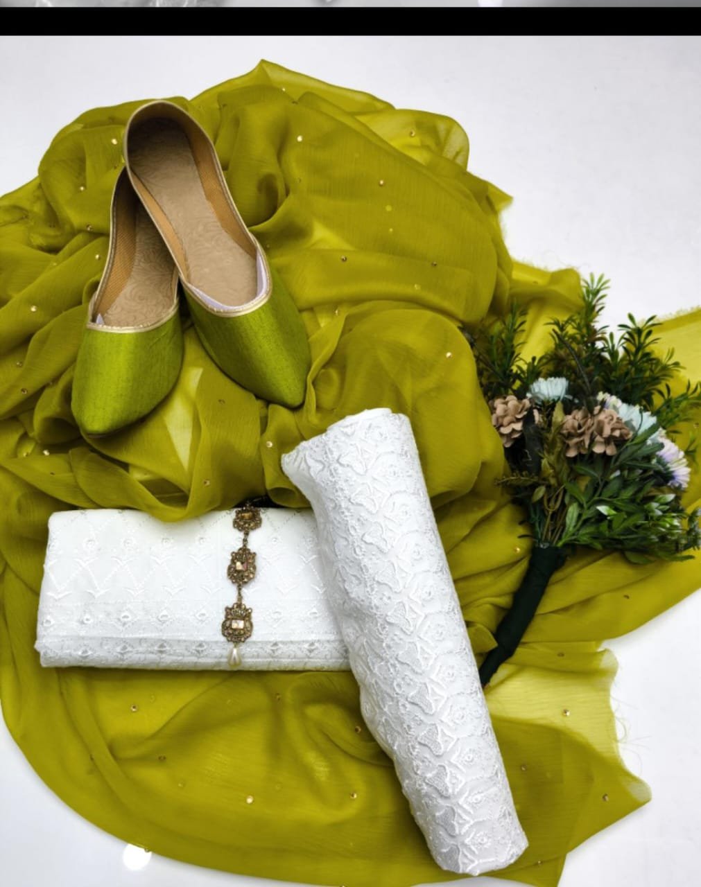 Embrace elegance with our New Chicken Kari Embroidered 3PC Dress, a stunning blend of tradition and sophistication – now with a FREE matching Khussa! 👡💖
