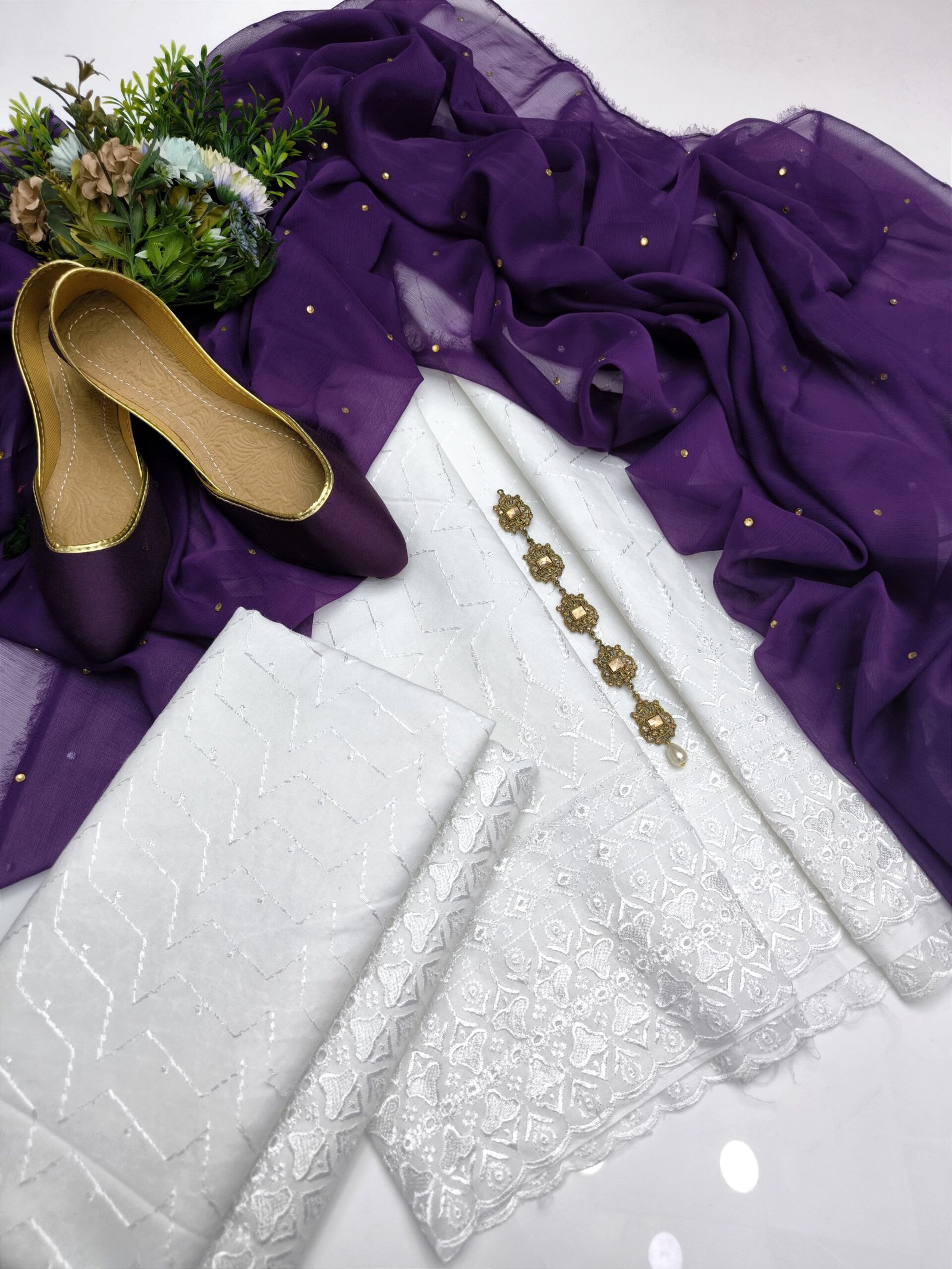 AmorZaib Embroidered 3-Piece Chicken Kari Set + Free Khussa – Purple