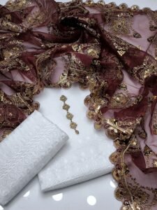🔹 Luxury Organza Dupatta: Adorned with heavy multi-thread embroidery & 5MM sequins, plus exquisite 4-sided cutwork detailing for a mesmerizing finish.