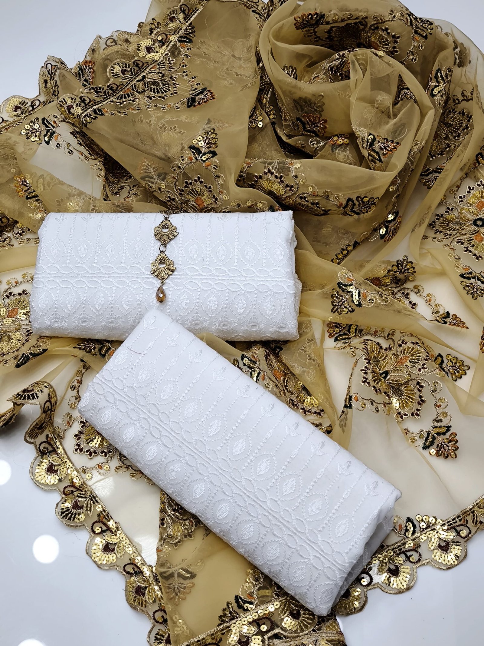 AmorZaib Summer Embroidered 3-Piece Chicken Kari Set – Golden
