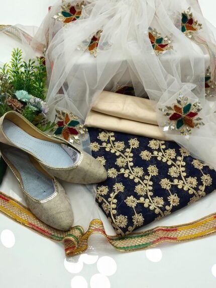AmorZaib Luxurious 4PC Embroidered Dress with Free Khussa – Dark Blue