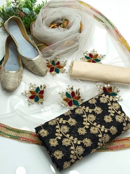 AmorZaib Luxurious 4PC Embroidered Dress with Free Khussa – Black