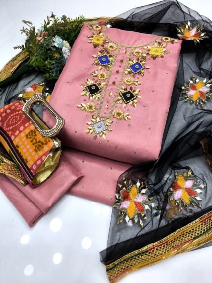 Women's Unstitched, Chiffon, Embroided, Kattan Silk, Shamooz Silk